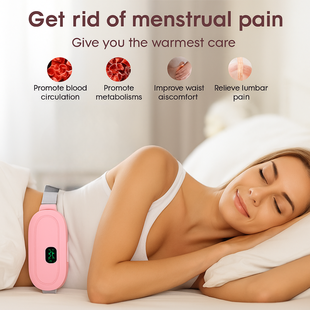 You don’t have to curl up in bed anymore. With soothing warmth and gentle massage, relief is now just one click away.